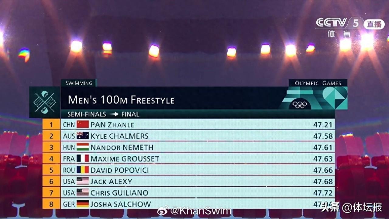 男子100米自由泳決賽將於北京時間8月1日凌晨舉行。