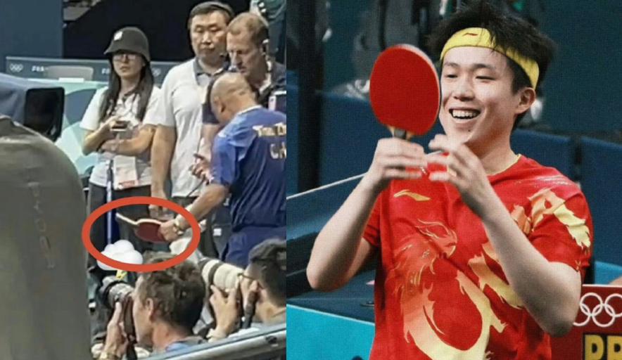 由於王楚欽接下來還要出戰單打賽事,球拍斷了就無法使用,肯定會心情變糟,據悉,球拍是被奧運賽場中的一位攝影師踩斷了。