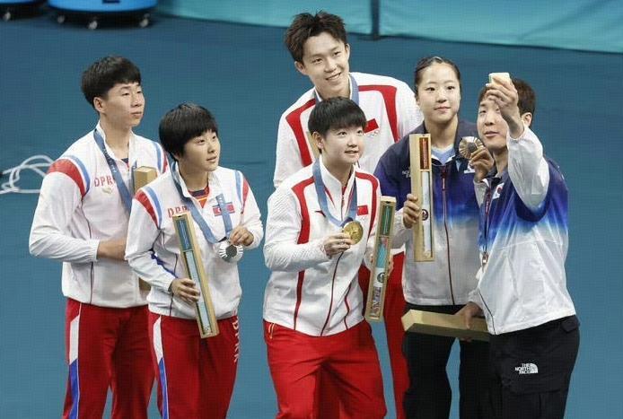 巴黎奧運會乒乓球混雙決賽,中國組合孫穎莎與王楚欽不負衆望,一路連勝,闖入到最後的金牌爭奪戰,最終擊敗了朝鮮組合李正植與金琴英,值得一提的是,在頒獎儀式上,中朝韓3國的運動員同框自拍,畫面溫馨和諧,這一幕非常美好!