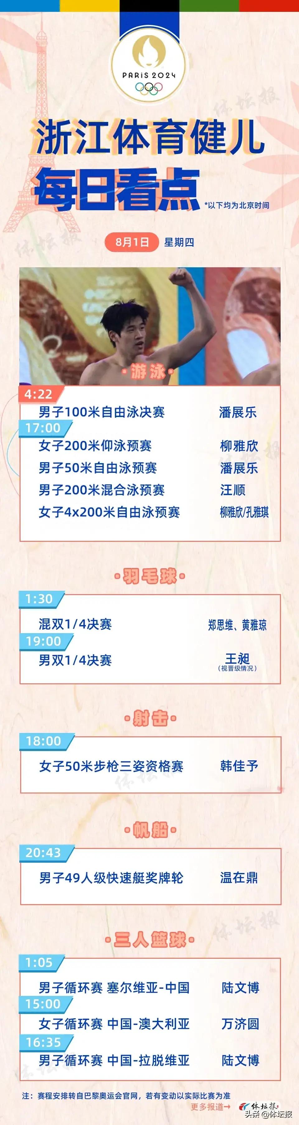 北京時間4:22,男子100米自由泳決賽將舉行,浙江小將潘展樂將出戰。半決賽中,潘展樂以47秒21的成績,排在小組第一位晉級。