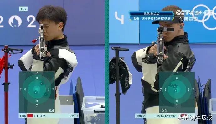在北京時間8月1日15點30分的男子步槍三姿決賽中,劉宇坤在第一個跪姿結束後排名第二,落後第一名1.3環;第二個臥姿,劉宇坤錶現平穩,縮小差距,以0.6環的劣勢繼續排名第二;最後一個站姿,頂住壓力,最終以總成績第一拿下冠軍。
