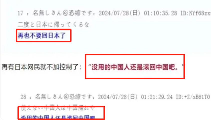 一些憤怒的日本網友甚至留言:滾回中國吧!我們不需要你。