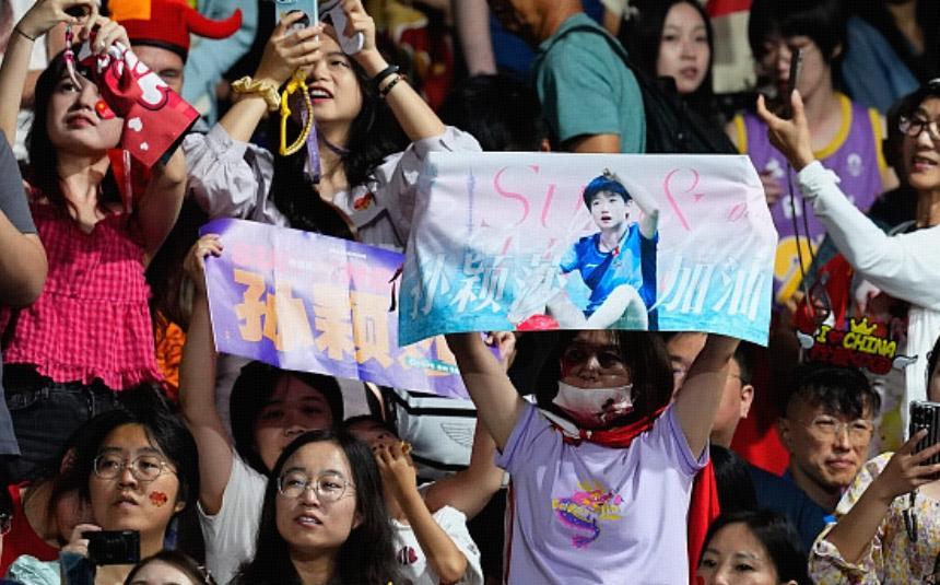 關鍵的第四局,孫穎莎必須要頂住,一度10比5領先,但頑強的陳夢連續追分,來到9比10,孫穎莎主動叫了暫停,打亂對手的節奏,回到比賽之後,陳夢迴球出界,孫穎莎總比分再度戰平。