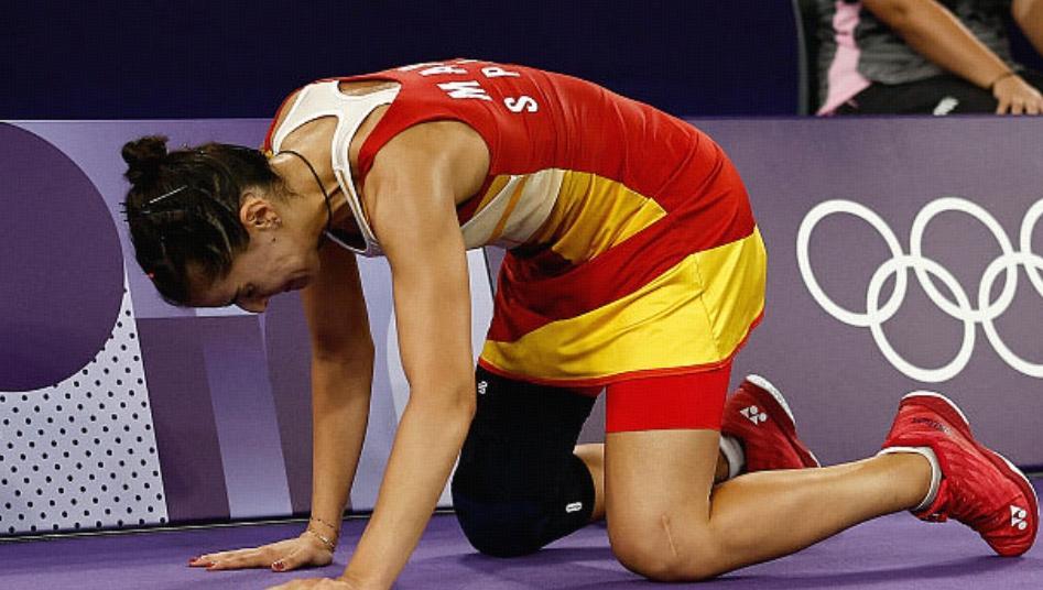 不過回到比賽場地之後,馬林在跑位移動方面影響極大,網前球壓根救不到,後場殺球也不敢起跳,就這樣,連續丟掉2分之後,馬林走到了場邊,雙膝跪地哭泣,因爲她知道,自己的奧運會結束了!