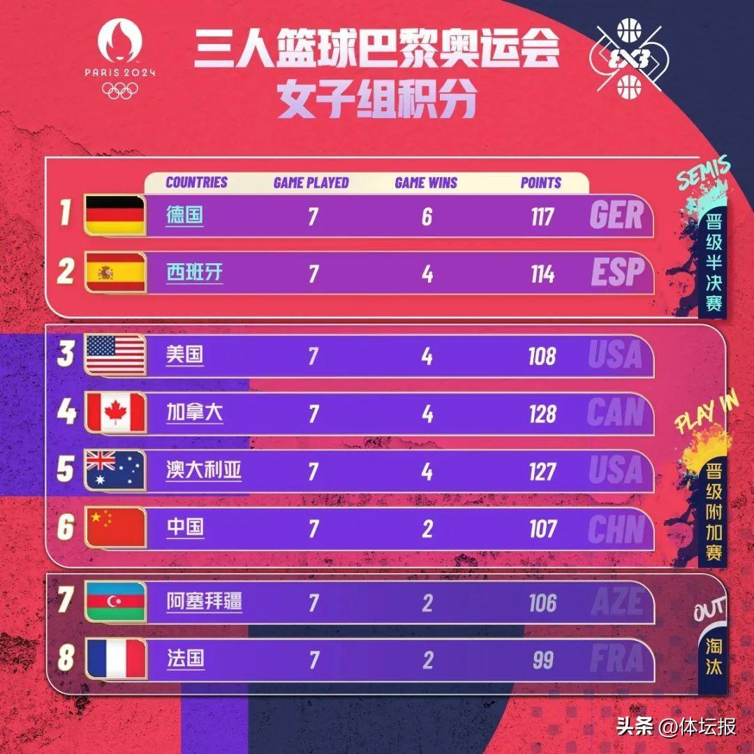 北京時間8月4日,巴黎奧運會三人女籃決出四強,德國、西班牙、加拿大和美國成功晉級,中國隊則是在附加賽中以13-21不敵美國隊,最終排名第六結束了本屆奧運之旅。