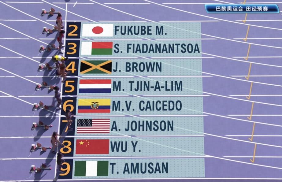比賽開始了,吳豔妮從起跑就比較落後了,反應時間0.185秒,算是這一輪選手中非常靠後的了,然後她在中後程加速追趕,最終第六個撞線,成績爲12秒91,這個成績不算出色,也很難幫助她挺進下一輪,衝線之後,由於吳豔妮的排名不是很高,所以鏡頭也幾乎沒有對準過她,就這樣,吳豔妮暗淡離場,也沒有在巴黎賽道上做過多停留。