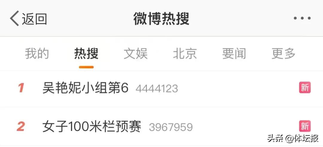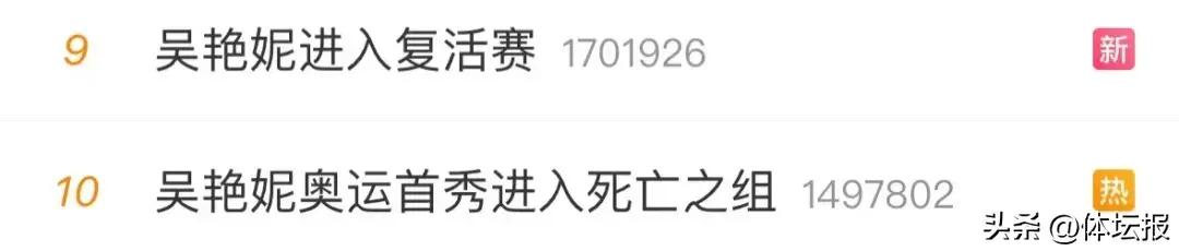 賽前,吳豔妮奧運首秀進入“死亡之組”衝上微博熱搜。吳豔妮被分在第1組,與剛剛跑出12秒69的日本名將福部真子同組。同組對手包括尼日利亞名將世界紀錄保持者阿穆桑、美國名將約翰遜、牙買加名將鮑文。