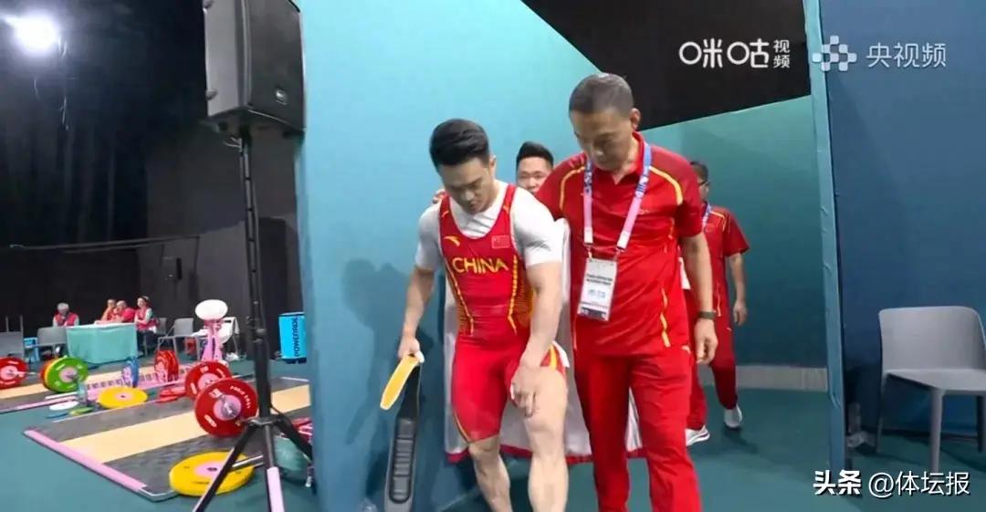 最後一次挺舉,一個趔趄後槓鈴重重地摔下,明顯是受傷了。在觀衆注目下,肌肉拉傷的石智勇,一瘸一拐地走下舉重臺……