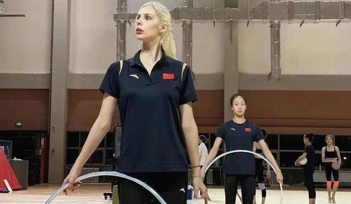 滿眼欣慰!中國藝術體操金髮外教好美,奪冠幕後功臣,氣質高雅