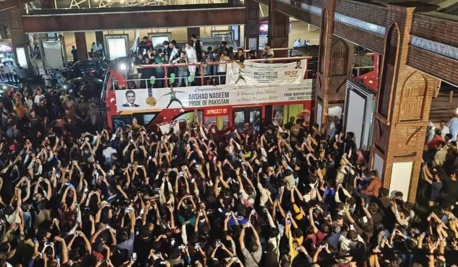 巴基斯坦首都機場方面還安排了象徵最高禮儀的“過水門”,當地警察樂隊舉行盛大歡迎儀式,超過150人的安保陣營和精英車隊“保駕護航”,納迪姆離開機場之後,連夜乘坐雙層巴士參加了勝利遊行,巴基斯坦舉國歡慶,車隊兩側人山人海,徹夜不眠,所有人都沸騰了。
