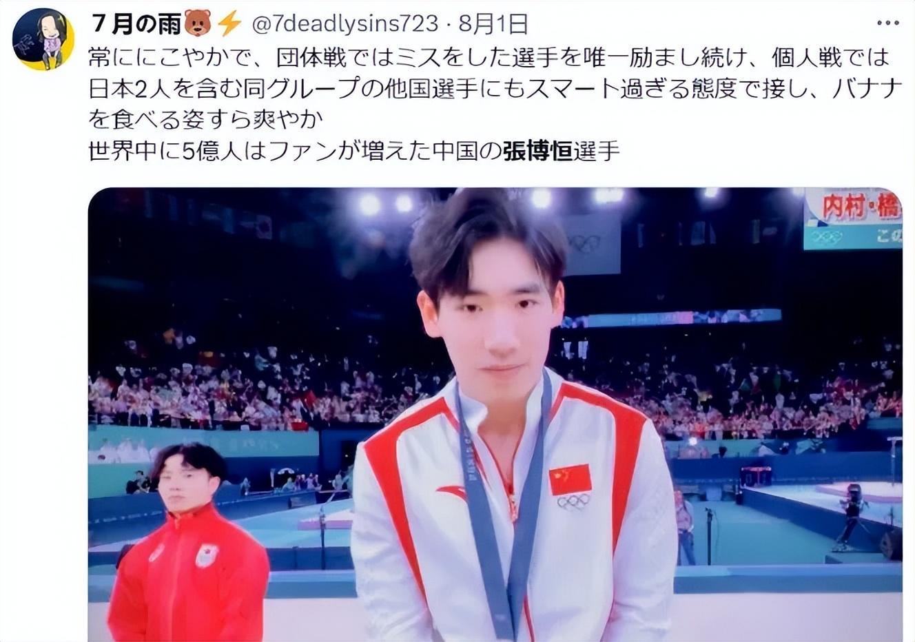 在比賽結束後,“意難平”成爲了人們描述他時最常使用的詞。回想36年前的漢城奧運會上,曾經作爲民族英雄被人們仰望的“體操王子”李寧因爲三次掉下器械而成爲了衆矢之的,鮮花和掌聲也變成了刀片和塑料繩釦。那個時代的人們難以接受英雄的失敗,更不可能理解失敗的英雄。但在本屆奧運會上,公衆對運動員們的失利已經有了空前的寬容,即便張博恆終究沒能拿回一塊金牌,大家還是最終在他的微博下把千言萬語匯成一句“辛苦了”。無數人在屏幕前爲他溼了眼眶,更有無數人在社交網絡上抒發着對他的惋惜——這其中甚至不光包括國人。在巴黎奧運會期間,有無數外國網友也粉上了這位溫柔、謙遜、帥氣又強大的選手,其中尤以日本網友爲多。