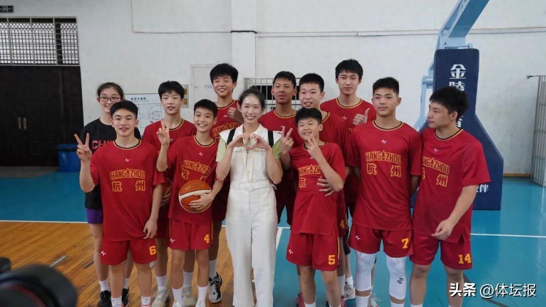 現場,江旻憓一身白色連體褲,梳着蓬鬆的丸子頭,臉上時刻洋溢着標誌性的笑容。她還和杭州市擊劍隊的四名隊員進行了交流,並對他們進行了現場指導。她說:“我奧運之後都沒見過小劍手,所以見到你們我很開心,也提醒了我當時爲什麼那麼喜歡擊劍。”