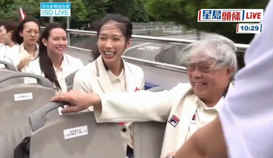 香港媒體甚至還調侃這一幕是“坐過山車”,霍震霆坐在敞篷巴士的第一排位置,身後是奧運擊劍冠軍江旻憓,78歲高齡,頂着一頭白髮,霍震霆在大風中形象管理徹底失敗了,冒雨破風,不少網友擔心,“老爺子回家之後恐怕得頭疼好幾天!”