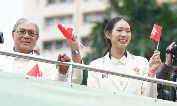 近日,中國香港隊在巴黎奧運取得佳績之後,也開始了慶祝活動,他們乘坐敞篷巴士巡遊並與巿民同慶,雖然香港當日的天氣狀況不佳,吹着大風,淅瀝瀝地下着雨,仍無阻市民冒雨一睹港將風采,不過,坐在敞篷巴士裏的奧運健兒,以及78歲高齡的霍震霆,簡直被大風吹得東倒西歪,頗爲狼狽!