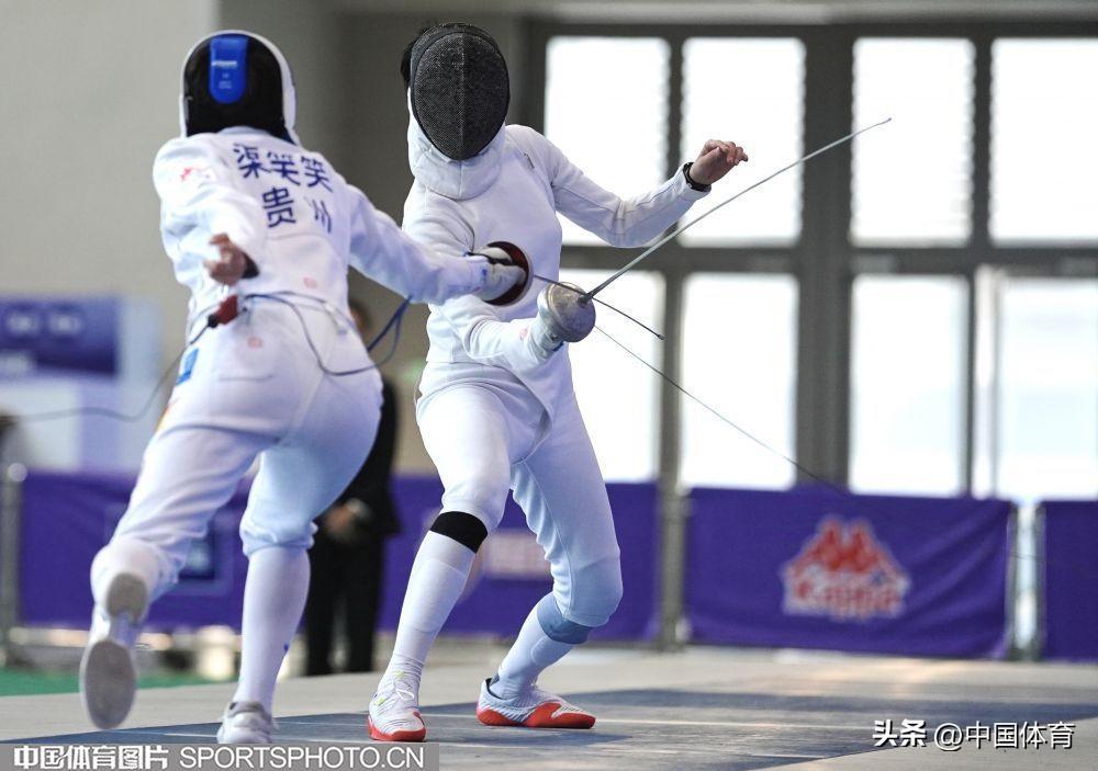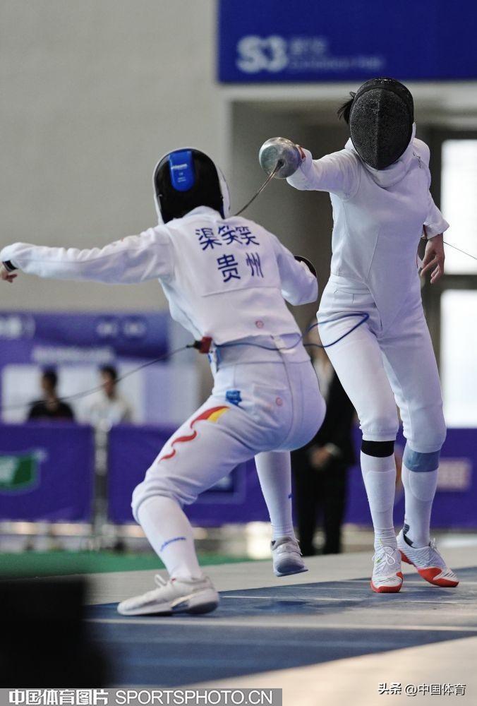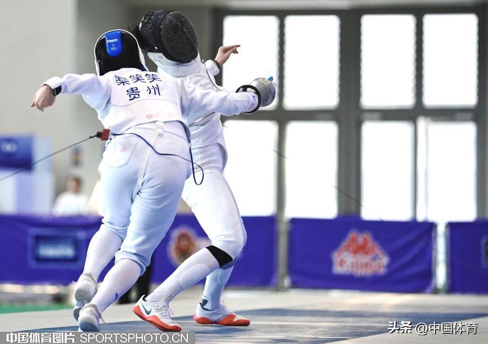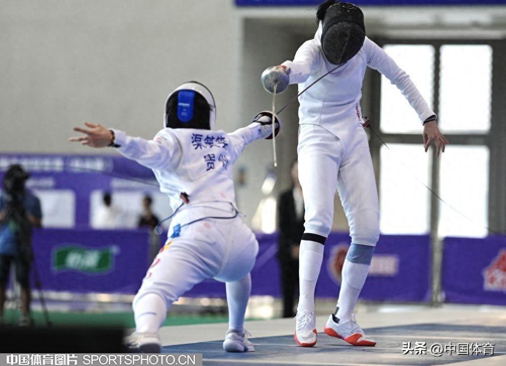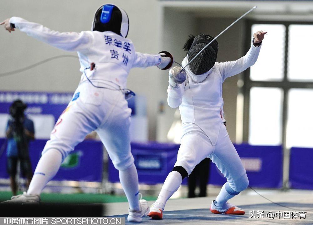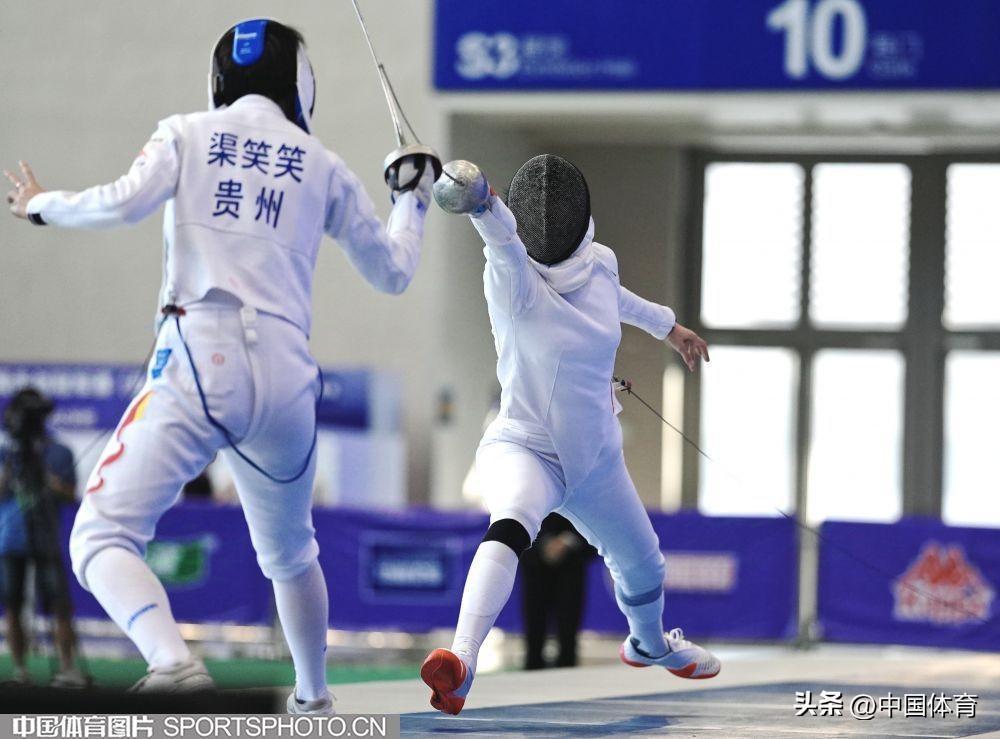 中國體育訊 8月23日,2024全國擊劍冠軍賽總決賽在重慶國際博覽中心舉行。在女子個人重劍決賽中廣東選手賴江玲(右)戰勝對手獲得冠軍。(中國體育圖片 倪敏哲 攝)
