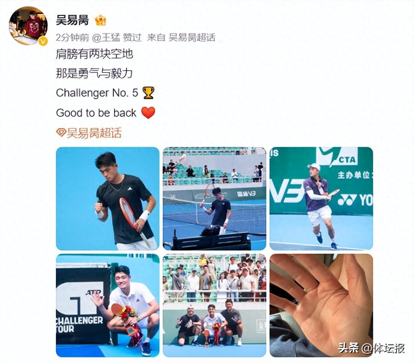 賽後,吳易昺發文慶祝勝利:““肩膀有兩塊空地,那是勇氣與毅力。回來真好。”
