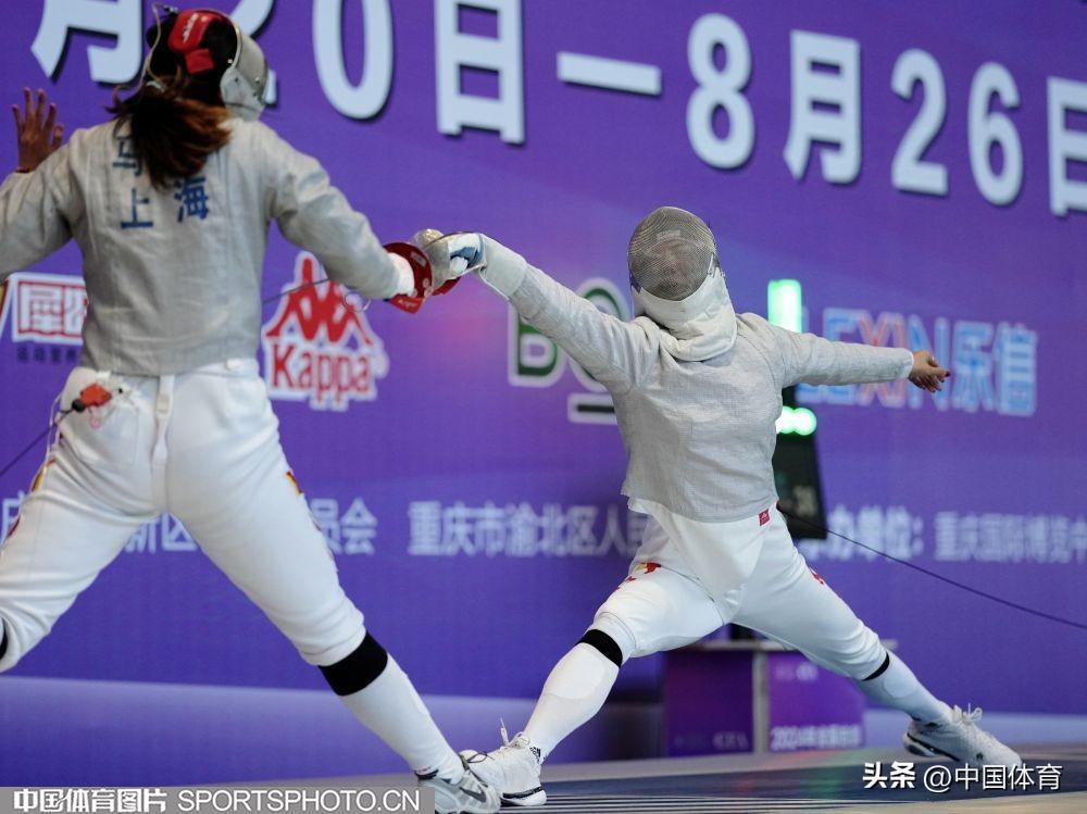 中國體育訊 8月24日,2024全國擊劍冠軍賽總決賽在重慶國際博覽中心舉行。在女子團體佩劍決賽中,江蘇隊戰勝上海隊獲得冠軍。(中國體育圖片 倪敏哲 攝)