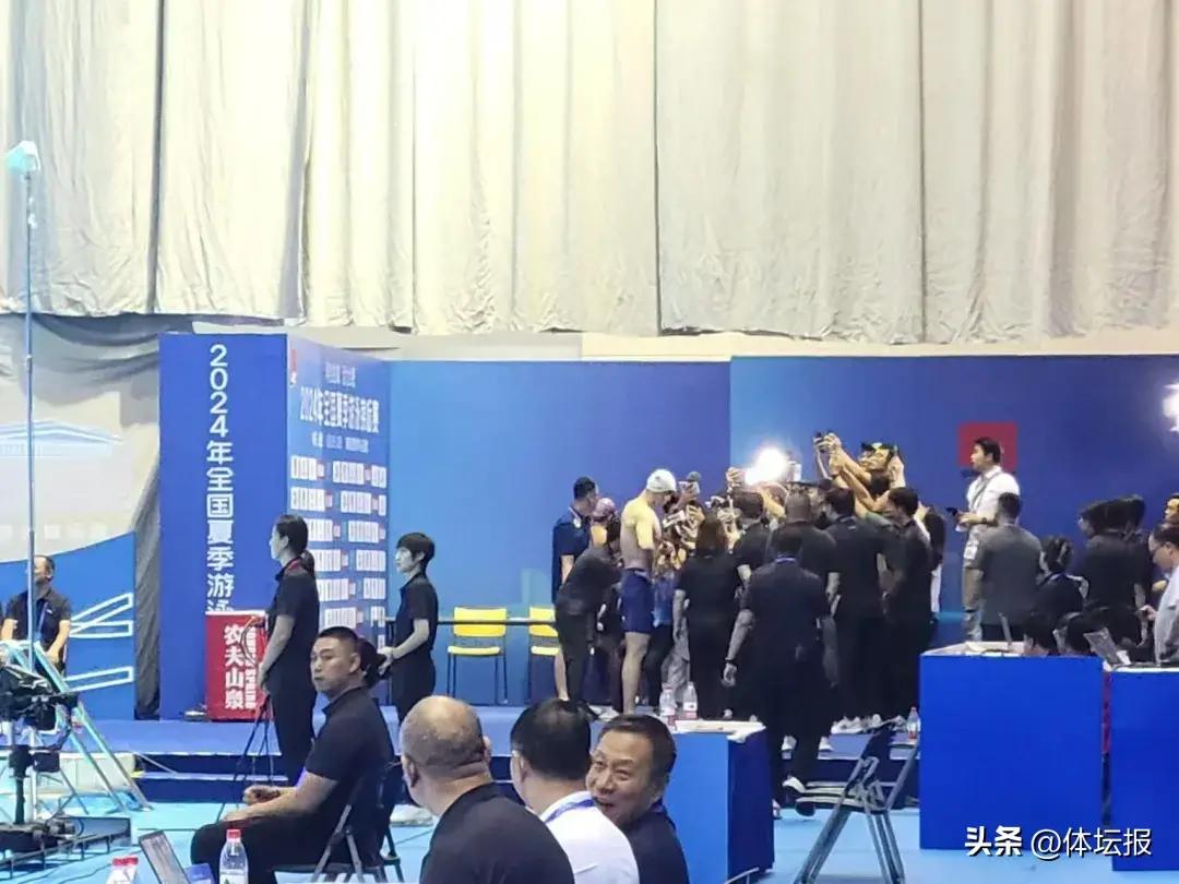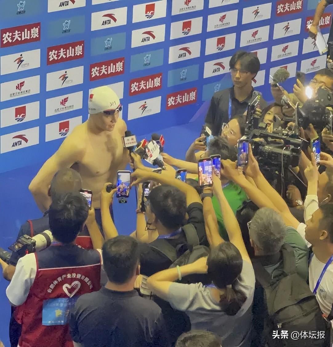 賽後,孫楊也成爲了採訪區的焦點