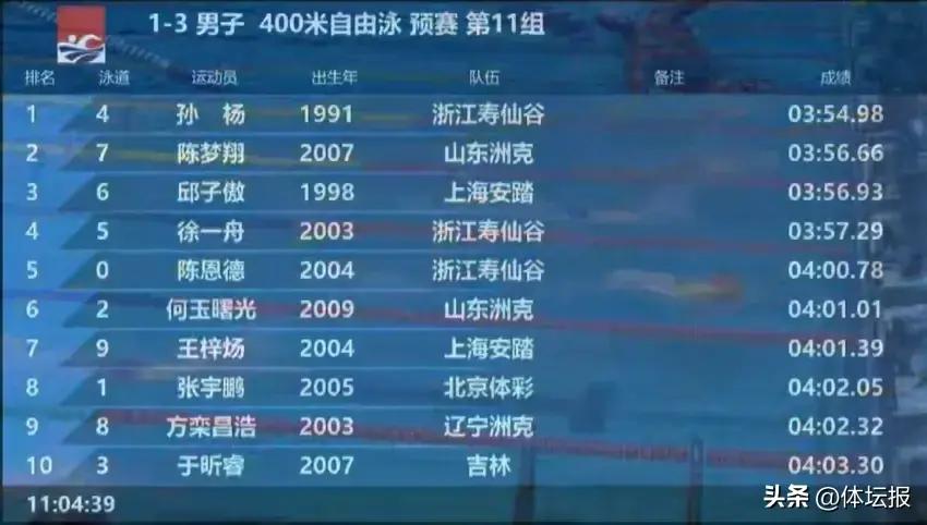 預賽的成績和孫楊預期中差不多