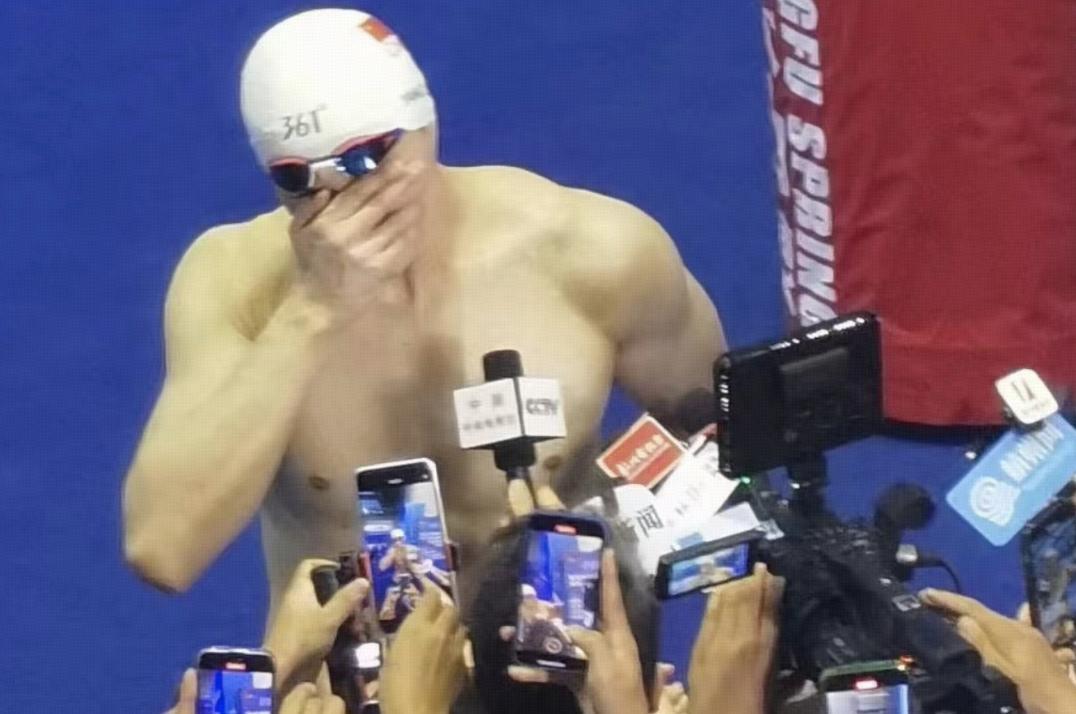 孫楊又哭了!奪冠後泣不成聲,與妻子十指緊扣,張豆豆笑容好美