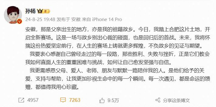 全國第一!32歲孫楊太牛了,歸來仍是王者,發文回應復出首冠