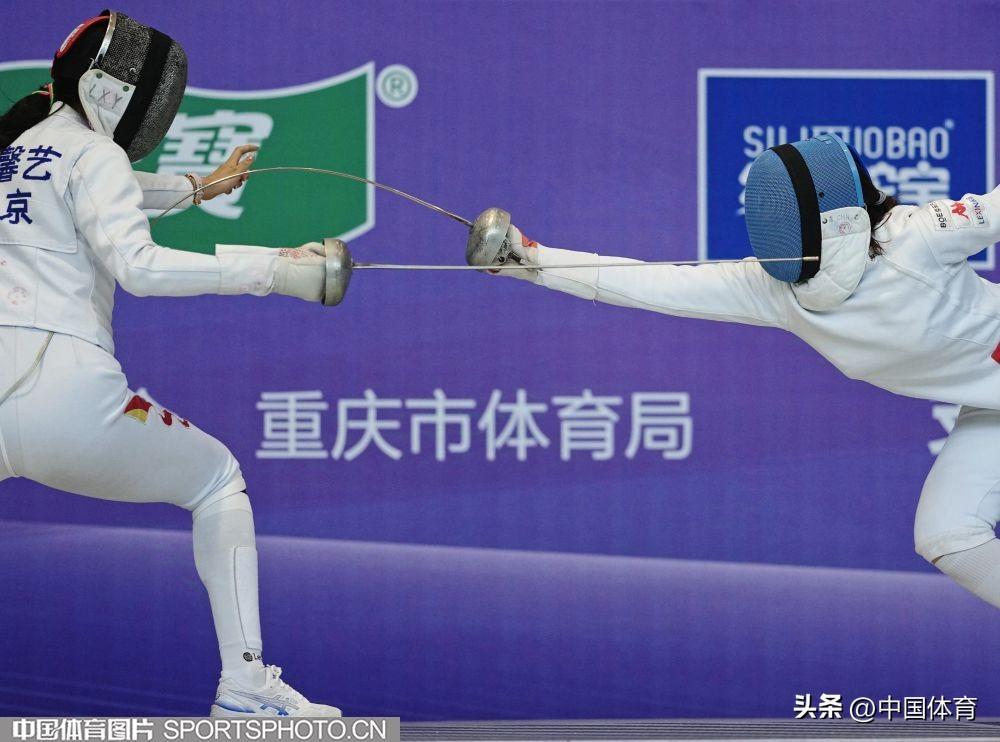 中國體育訊 8月25日,2024全國擊劍冠軍賽總決賽在重慶國際博覽中心舉行。在女子重劍團體決賽中安徽隊戰勝北京隊獲得冠軍。圖爲比賽場景。(中國體育圖片 倪敏哲 攝)