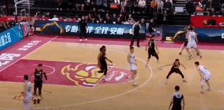 王嵐嶔很擅長給擋拆內線喂餅,面對的防守人越多,他越能傳出富有想象力的球,有些時候甚至能讓球領着隊友跑(這是優秀組織者的必備技能),比如這一回合的阿日。
