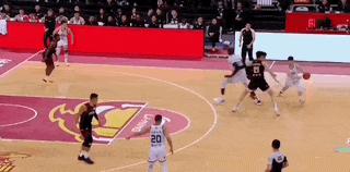 王嵐嶔的組織天賦在這一回合體現得尤爲明顯,在一片混亂的半場進攻中,他能在擋拆後及時發現底角切入的隊友,越過中間三四名防守人,用一記拋射精準傳到籃下。這種突然的直塞、給內切隊友的高質量喂餅,甚至有了些吉諾比利的味道。