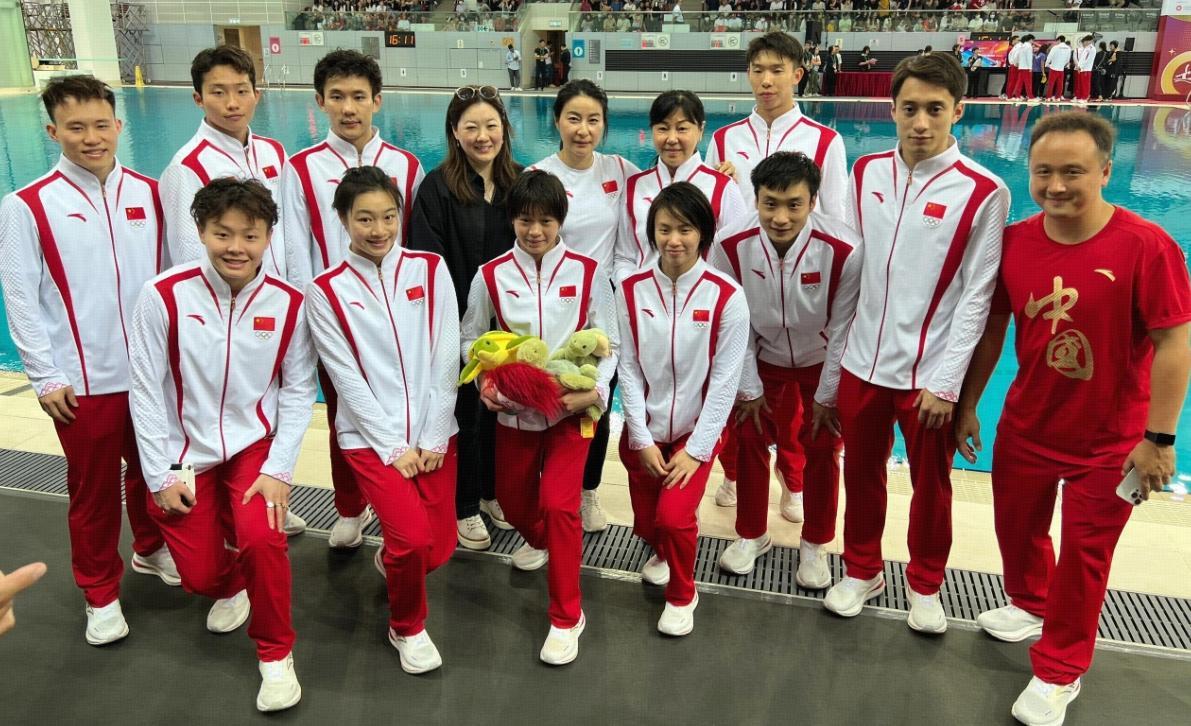 近日,內地奧運健兒們齊聚香港,並且在維多利亞公園游泳池舉行的跳水及游泳的示範表演,值得一提的是,昔日國家隊兩代“大師姐”郭晶晶和伏明霞罕見同框,驚喜現身。兩位前輩還進入運動員休息室跟準備表演的師弟師妹們交流。