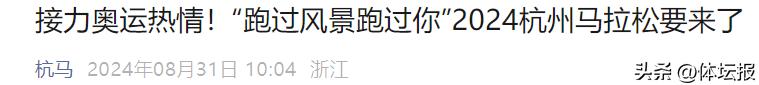 日前,杭州馬拉松組委會發布最新消息,宣佈2024年杭州馬拉松擬定於11月舉行,賽事將設置全程馬拉松、半程馬拉松、歡樂跑三個項目,總人數規模達3.6萬人,其中全程馬拉松20000人、半程馬拉松12000人,歡樂跑4000人規模,並透露報名通道將在近期正式開啓。