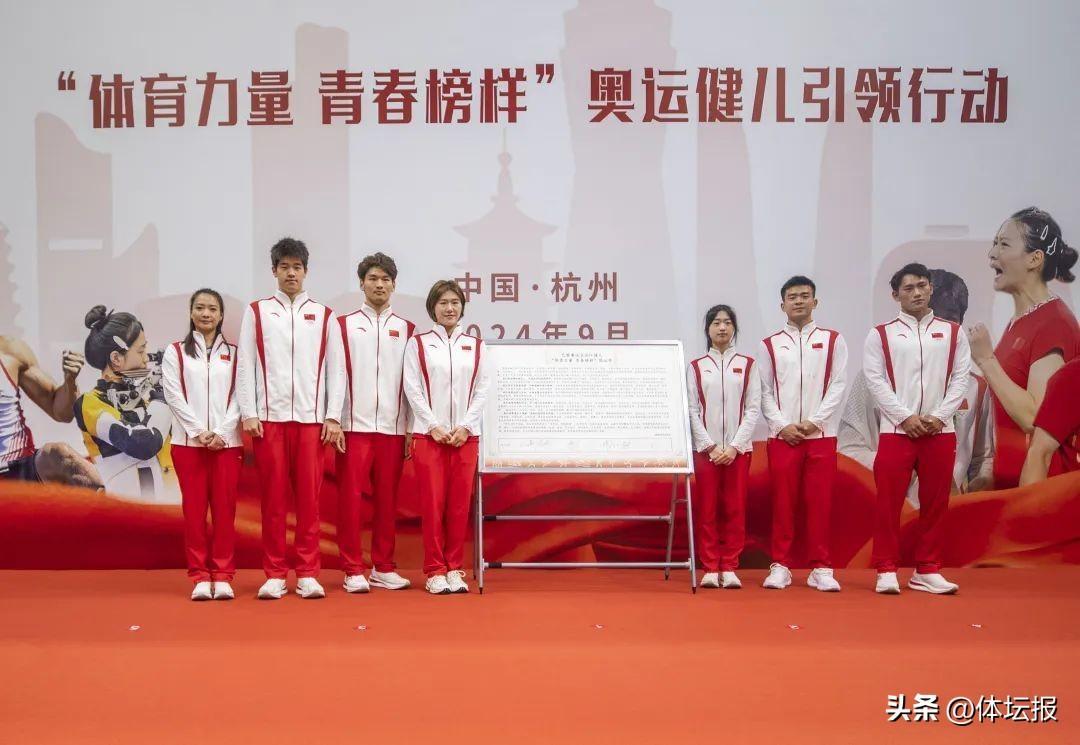 9月3日,在奧運健兒“體育力量 青春榜樣”引領行動中,巴黎奧運會冠軍潘展樂、黃雨婷、徐嘉餘、鄭思維/黃雅瓊、季博文和倫敦奧運會冠軍葉詩文,代表37名巴黎奧運會浙江健兒鄭重發出倡議——