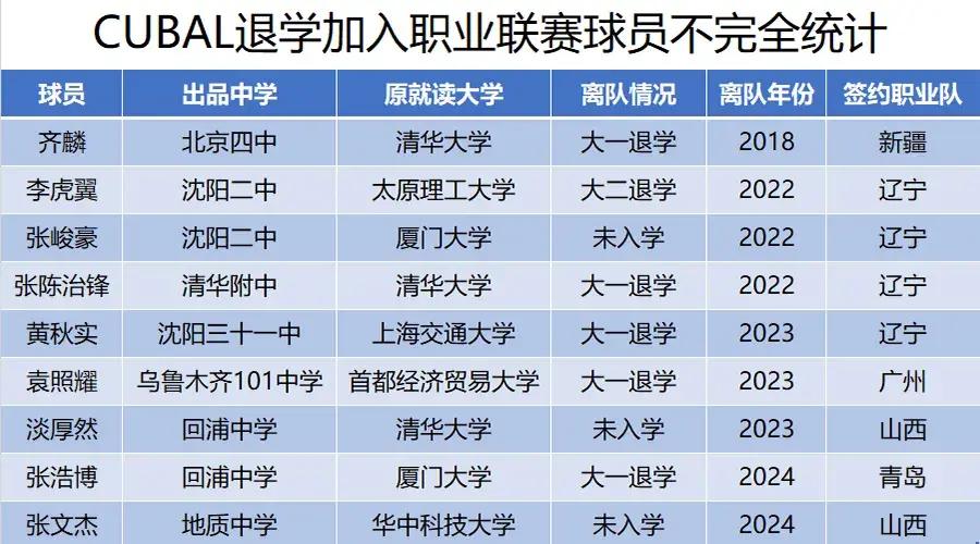 近年來,CUBAL因爲體考制度的改革再次受到衝擊,不少學校可能將因此退出聯賽舞臺,而強如清華大學,2024年度的招生數量也隨之大打折扣。但受到衝擊的又不僅僅是CUBAL聯賽,在2024年5月也曾經有過風聲,稱CBA聯賽的青訓制度可能也將迎來重大改革,甚至不排除CBA球隊取消青訓,全局改組青年聯賽的可能。