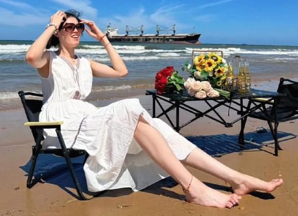 李盈瑩海邊度假!罕見穿裙子秀大長腿,媽媽好年輕,同框似姐妹