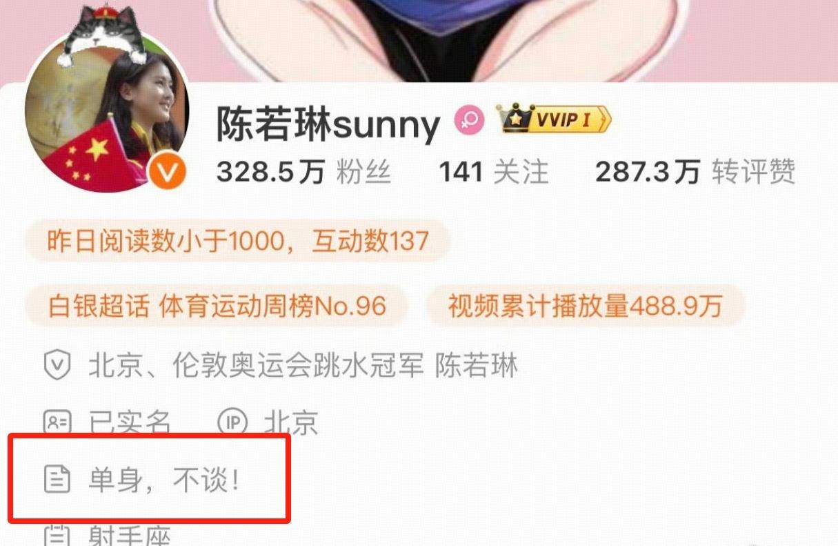 前段時間,網傳跳水隊奧運冠軍,全紅嬋的主管教練陳若琳和男演員牛駿峯在戀愛的消息,但很快,陳若琳的好友發文幫其闢謠,而就在不久前,陳若琳本人也終於做出了回應,她修改了社交賬號的狀態,強調“單身,不談!”