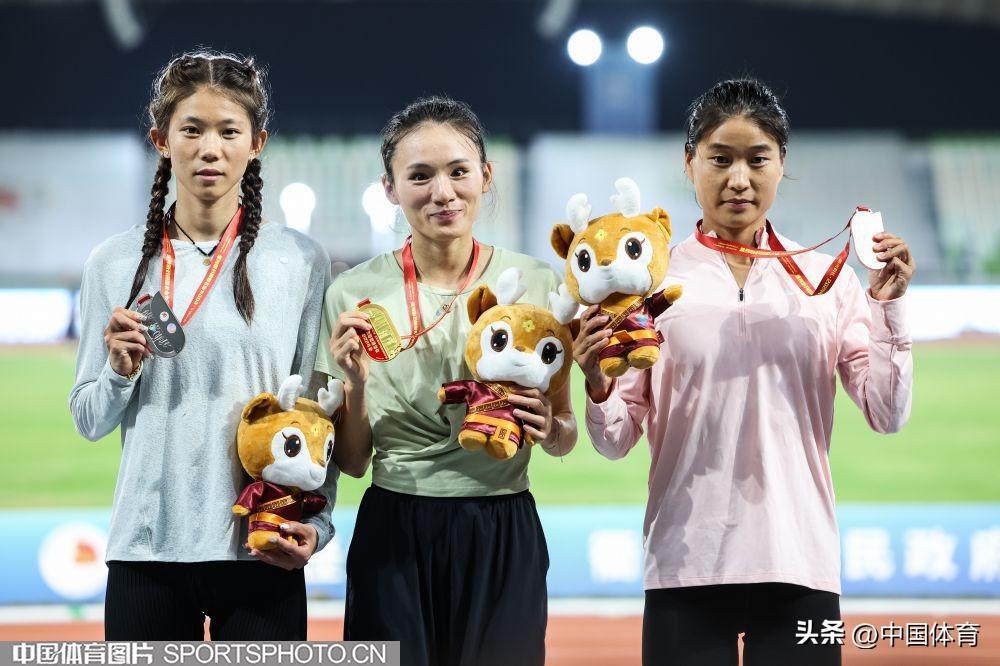 女子3000米障礙決賽中,上海隊許雙雙以9分51秒95笑攬金牌,甘肅隊王盼盼和張新豔包攬銀牌和銅牌,成績分別爲9分54秒90和9分56秒60。