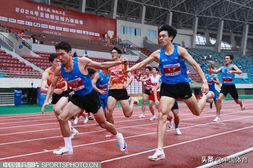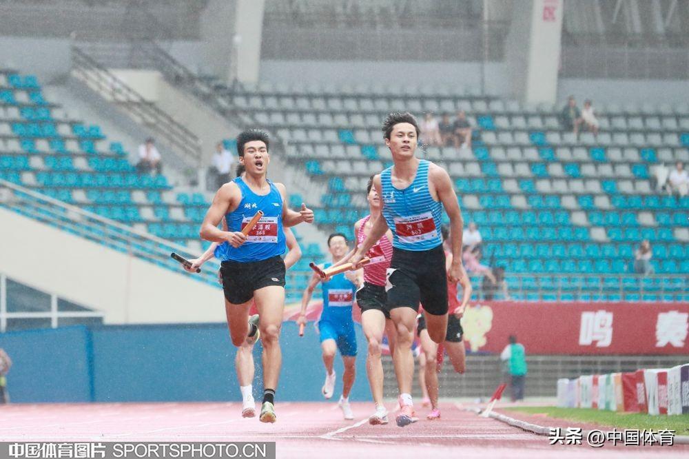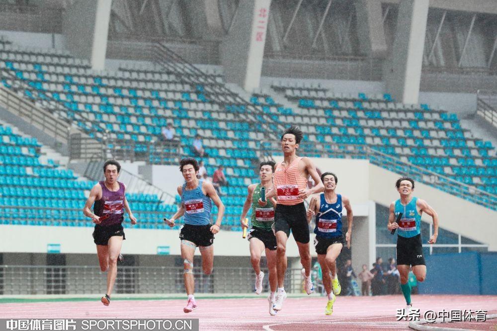 男子成年組4×400米接力浙江隊丁文豪撞線