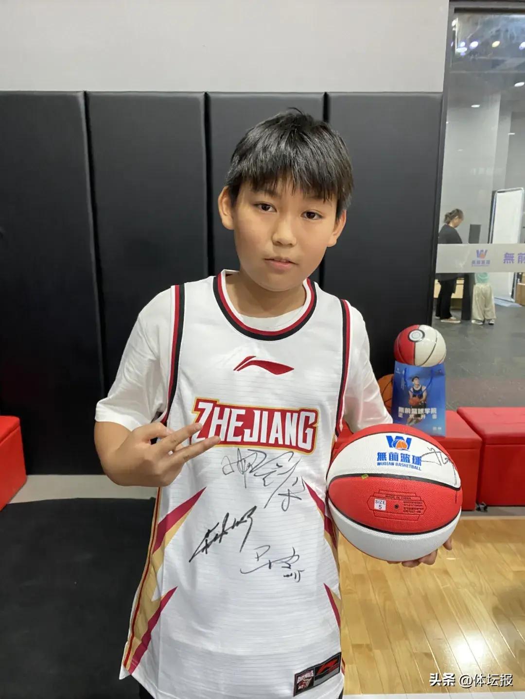 記者注意到,場邊有不少球迷身穿浙江男籃球衣前來觀戰,其中一位小球迷的簽名球衣和籃球格外顯眼。