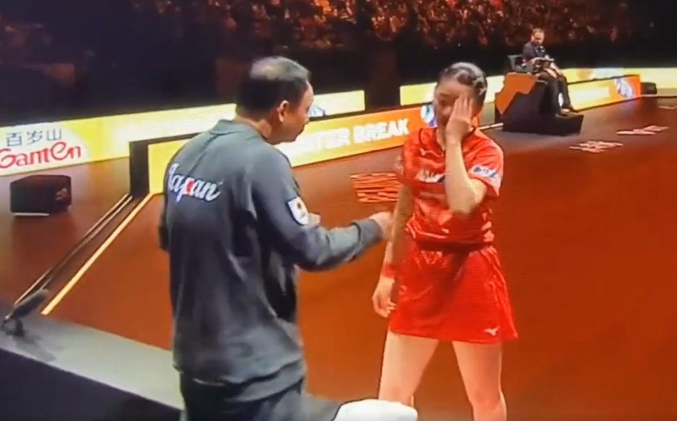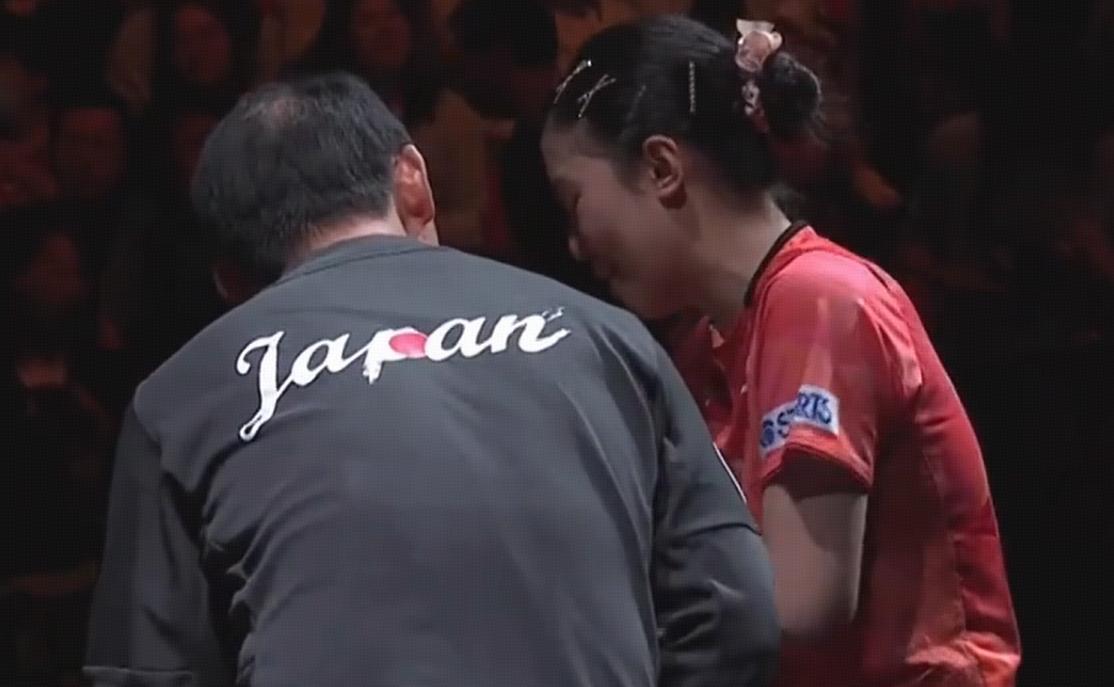 值得一提的是,這場比賽坐鎮指揮的是張本美和的父親,賽後看着女兒輸球的場景,他也是頗爲無奈,不停安慰孩子。
