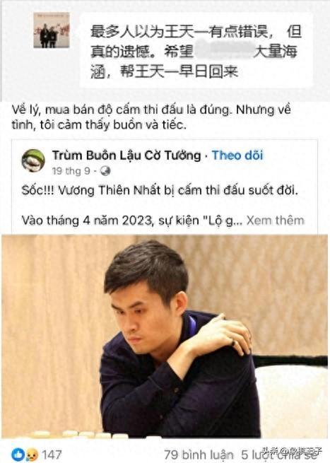 越南象棋名手,精通中文的費孟強談道,很多人認爲王天一犯錯了,禁買賣棋是對的,但從情感上講,感到傷心和遺憾,也希望他能早日回來,大量海涵。