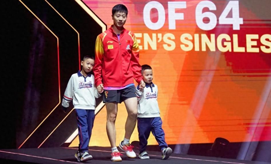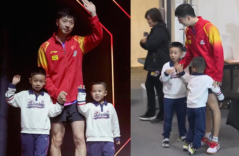 值得一提的是,在比賽開始前的運動員入場環節,馬龍給現場的球迷帶來了一個巨大的驚喜,他左右手各簽一個,把自己的兩個兒子帶到了現場,看臺上的中國球迷爆發出一陣歡呼,馬龍的兒子也非常配合地向看臺揮手致意,他們從小就知道,自己的父親是乒壇傳奇,難以抑制的自豪感,而這也是馬龍兩個兒子第一次公開亮相,可見“龍隊”對於這次賽事的重視程度。