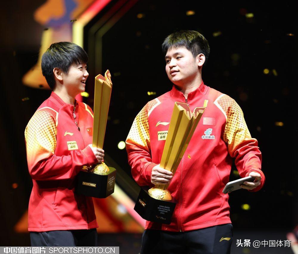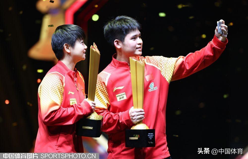 頒獎儀式上!冠軍林詩棟、孫穎莎自拍留念