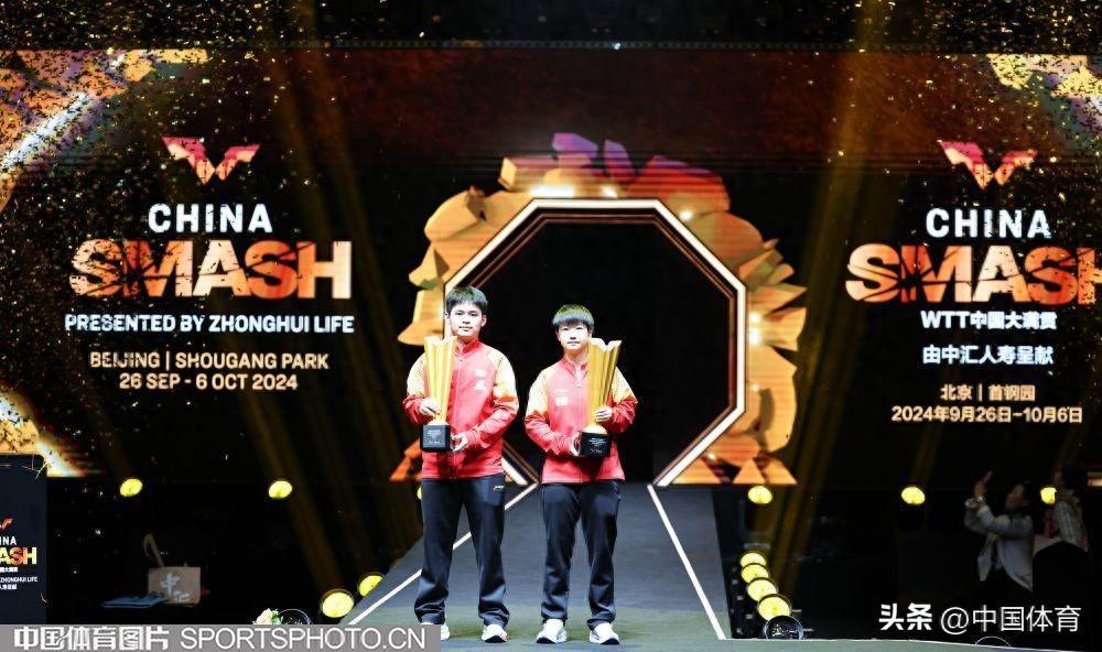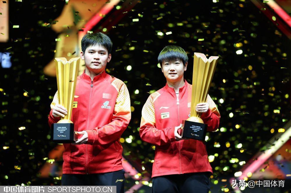 中國體育訊 10月6日晚,WTT中國大滿貫2024男子單打決賽在北京首鋼園圓滿落幕。林詩棟、孫穎莎分攬男、女單打桂冠。壓軸進行的男單決賽中,19歲小將林詩棟以4比3戰勝前輩馬龍摘金;稍早前進行的女單決賽中,孫穎莎以4比2擊敗隊友王曼昱折桂。(中國體育圖片 白宇 攝)