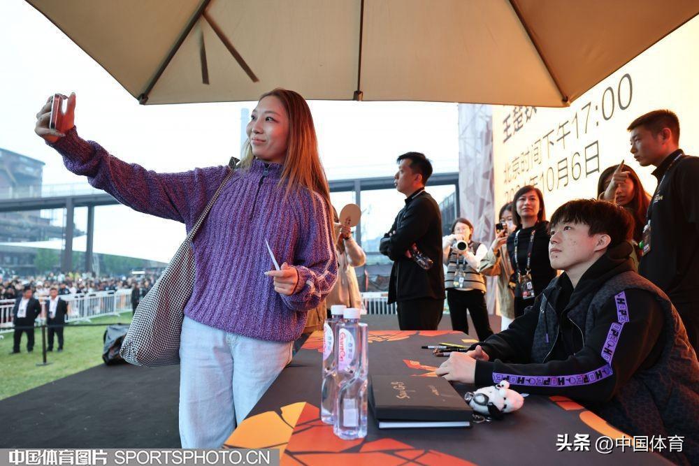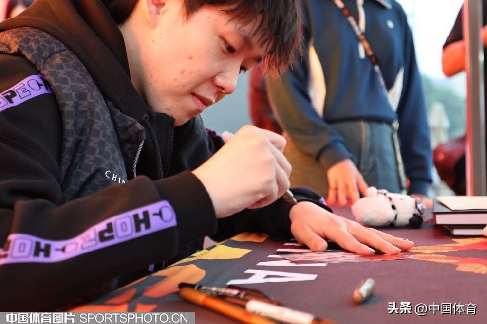 王楚欽爲粉絲簽名留念