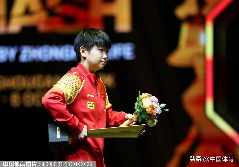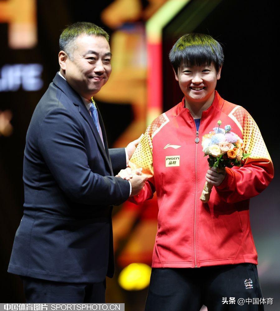 國際乒聯第一副主席劉國樑爲孫穎莎頒獎