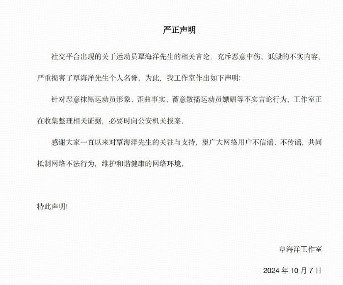 覃海洋被爆料出軌?工作室發聲明:歪曲事實!泳隊多人上線喫瓜
