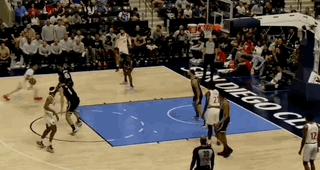 從這幾球也能看出,崔永熙的進攻選擇非常少,除了定點投射,基本是接球或過半場的持球強突。初次登場的緊張感和高強度下的笨拙感肉眼可見,比如他被三人包夾後的失誤,就像按着既定程序輸入的那樣,一定要合球跳步後再處理球,但對手不會讓你這麼悠哉。馬後炮地說,他完全可以在夾擊到臉之前把球甩給弧頂的隊友。