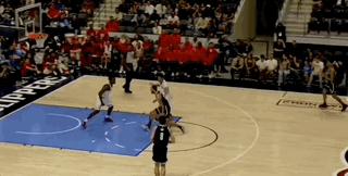 這一回合就是面對高大的防守人運算出錯,假動作幅度太小,起步太早,導致強起拋投不中。