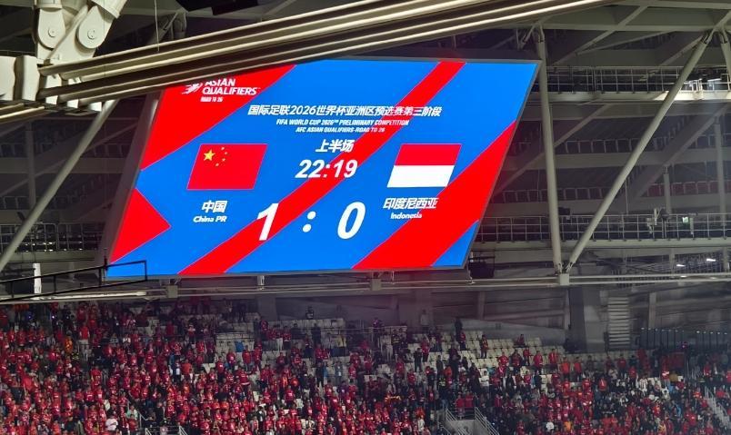 其中國足這邊,率先製造殺機,比賽第21分鐘,場上僵局打破,來自蔣聖龍的極限助攻,拜合拉木又破門了,國足1比0領先印尼,這也是中國男足連續第3場世預賽率先進球,這樣的表現確實很提士氣,但是此前的兩場比賽,國足都是在先進球的情況下,先後被沙特和澳大利亞逆轉,所以此番又領先了,中國隊需要放平心態,繼續戰鬥。