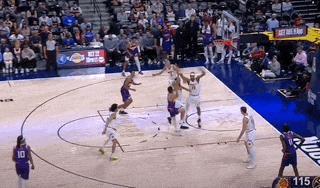 這還沒完,就在昨天,掘金選中的萊恩·鄧恩當着掘金的面,砍下了20分4籃板4助攻,另外還有震撼所有人的2搶斷3蓋帽。站帽威中、強突約基奇、一場球投出了大學一整年的產量......就像太陽拿着掘金賣出去的優惠券,去槍店淘了把好槍,回頭就讓掘金腦洞大開,而掘金只能握着花大力氣換來的啞炮,不甘地接受“其實鄧恩也能給約基奇擦屁股”的現實。