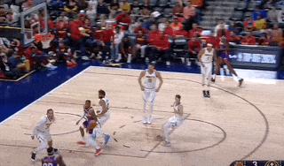 大學時代的鄧恩就經常換防外線,正因這一特質,他防擋拆的靈活性極強,經常能毫不猶豫地換防後衛,不被對手甩開身位,還能送上追身大帽。